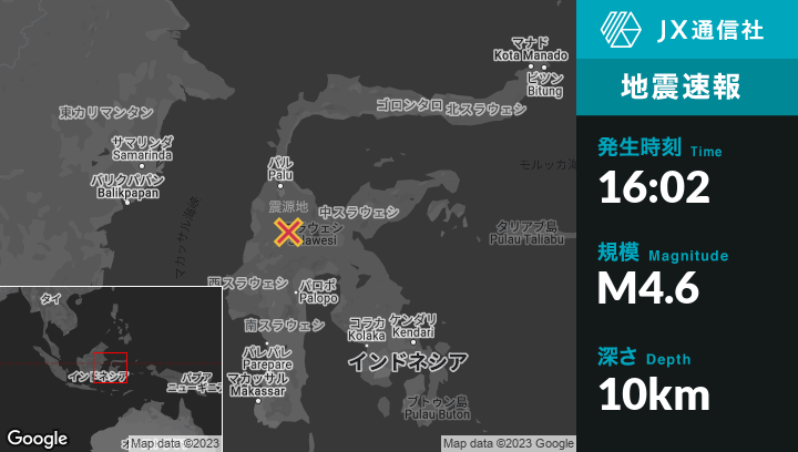 | 震源地 | インドネシアのPosoから西南西86kmの地点 |
