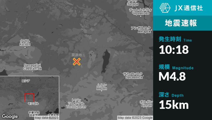 3月04日 10:18頃、ロシアのKungurtugから北東80kmの地点でM4.8の地震がありました。