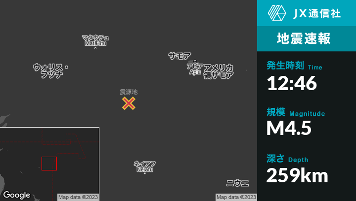 3月04日 12:46頃、トンガのHihifoから西北西107kmの地点でM4.5の地震がありました。