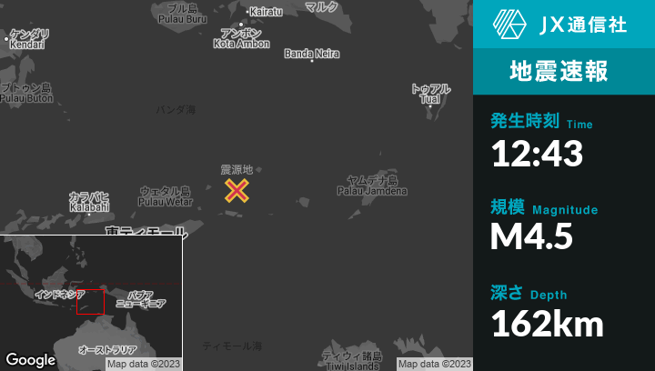3月06日 12:43頃、東ティモールのLospalosから北東163kmの地点でM4.5の地震がありました。