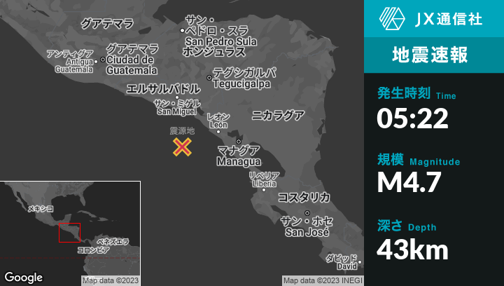 | 震源地 | ニカラグアのJiquililloから南西96kmの地点 |