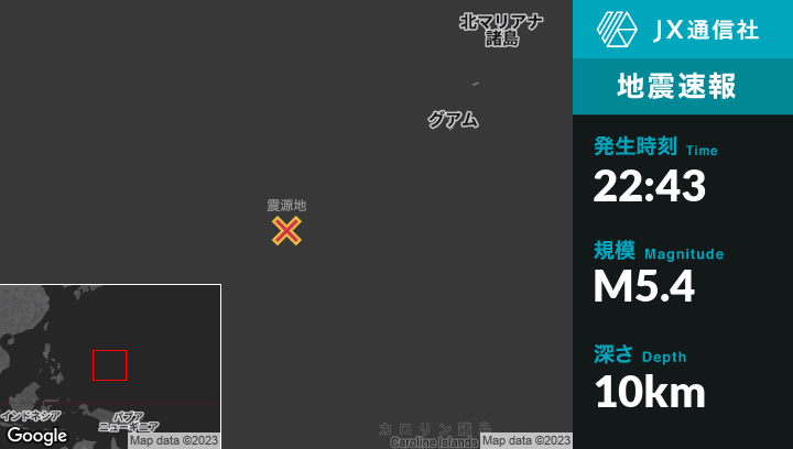 | 震源地 | ミクロネシアのFaisから北北東207kmの地点 |