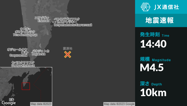 3月09日 14:40頃、ロシアのVilyuchinskから南南東192kmの地点でM4.5の地震がありました。