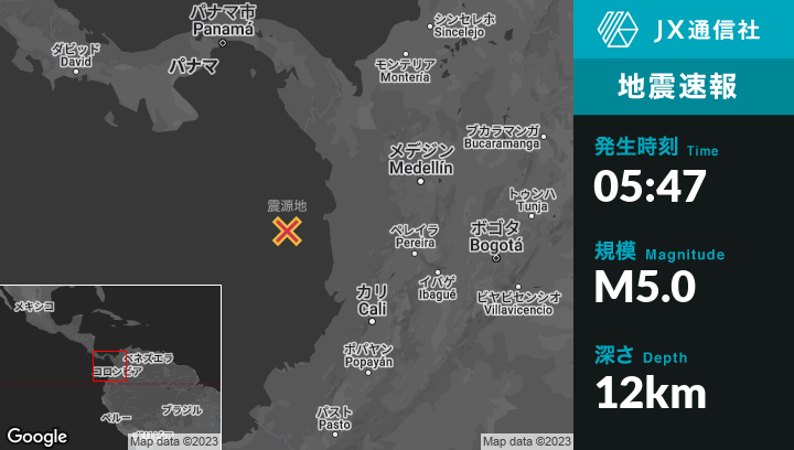 | 震源地 | コロンビアのPizarroから西北西107kmの地点 |