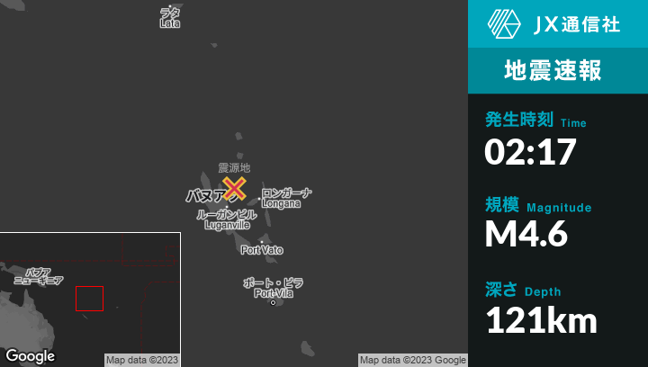 | 震源地 | バヌアツのPort-Olryから東北東33kmの地点 |