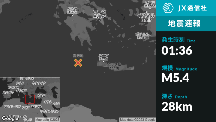 | 震源地 | ギリシャのKýthiraから南西101kmの地点 |