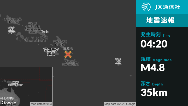 | 震源地 | ソロモン諸島のKirakiraから北北西85kmの地点 |