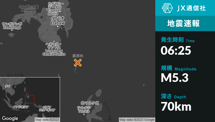 | 震源地 | フィリピンのSaranganiから東南東179kmの地点 |