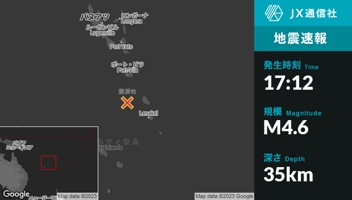 | 震源地 | バヌアツのPort-Vilaから南117kmの地点 |
