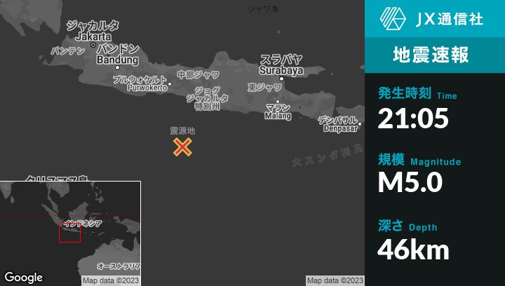 | 震源地 | インドネシアのSrandakanから南南西160kmの地点 |