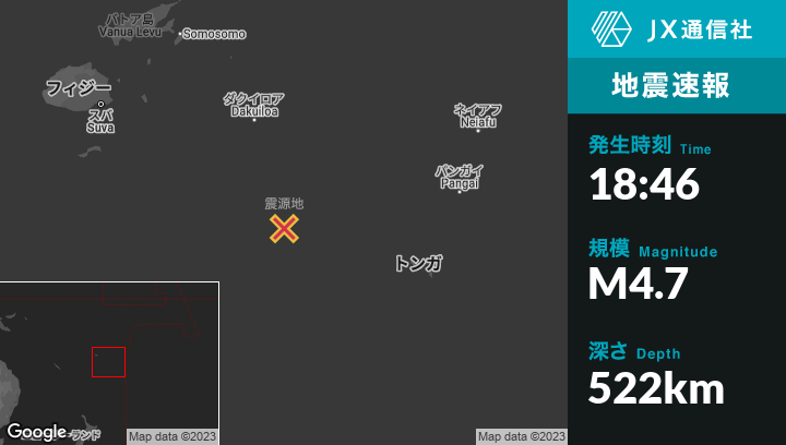 | 震源地 | トンガのHavelulotoから西北西290kmの地点 |