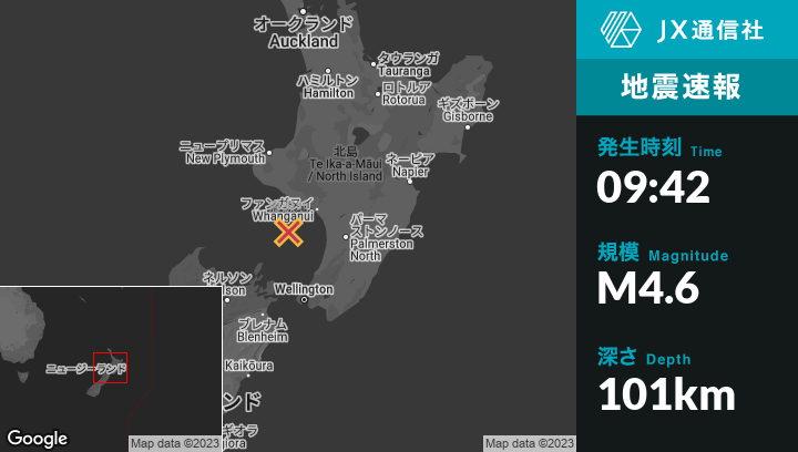 | 震源地 | ニュージーランドのPateaから南47kmの地点 |