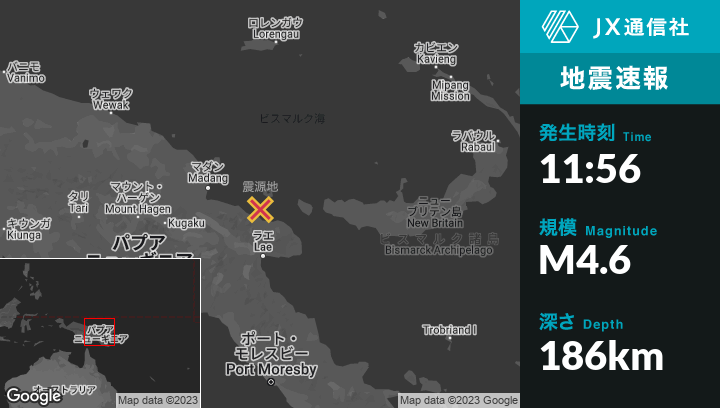 | 震源地 | パプアニューギニアのLaeから北128kmの地点 |