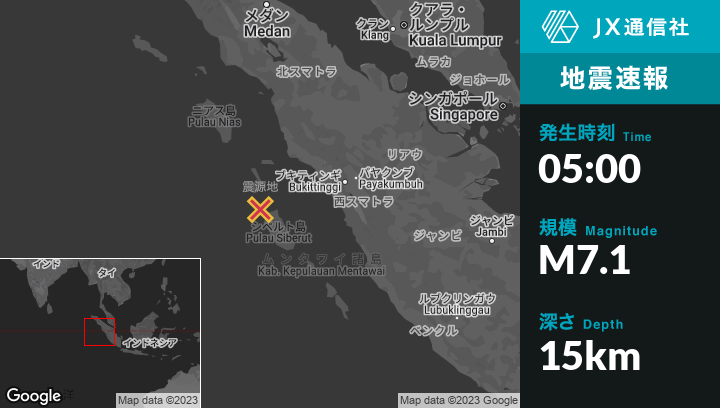 | 震源地 | インドネシアのTeluk Dalamから南南東170kmの地点 |