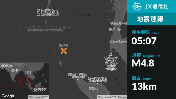| 震源地 | インドネシアのSabangから北北西293kmの地点 |