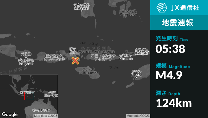 | 震源地 | インドネシアのSapeから南南西23kmの地点 |