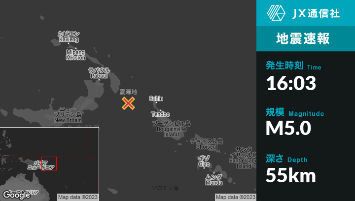 | 震源地 | パプアニューギニアのKokopoから東南東156kmの地点 |