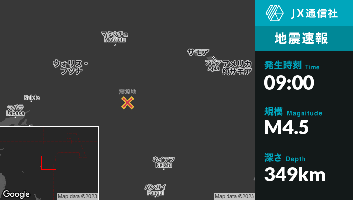 4月30日 09:00頃、トンガのHihifoから西197kmの地点でM4.5の地震がありました。
