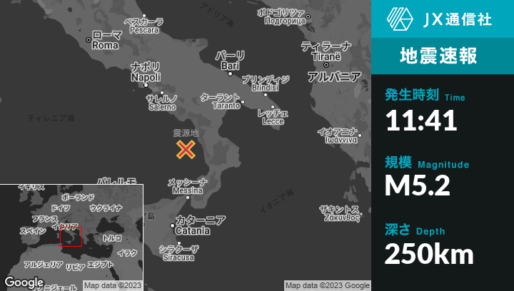 | 震源地 | イタリアのCittadella del Capoから西南西35kmの地点 |
