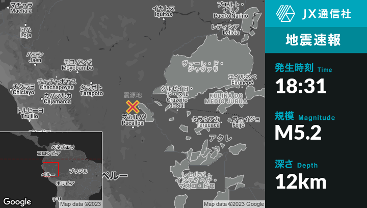 | 震源地 | ペルーのContamanaから東45kmの地点 |