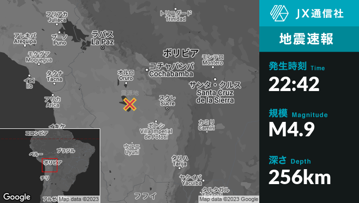 | 震源地 | ボリビアのChallapataから北西24kmの地点 |