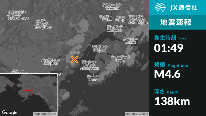 | 震源地 | アラスカのPort Alsworthから東73kmの地点 |