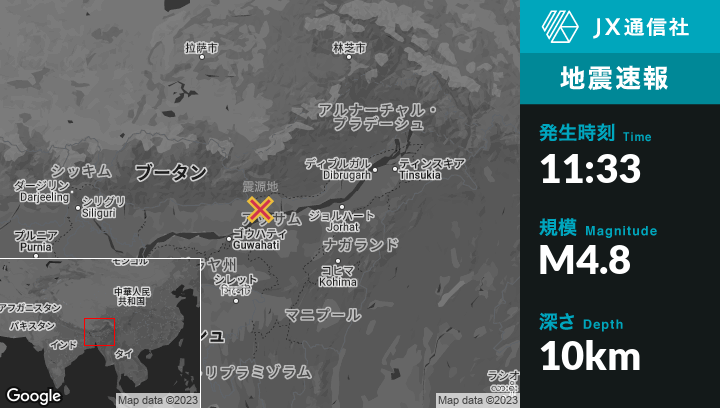 | 震源地 | インドのDhekiajuliから北西13kmの地点 |