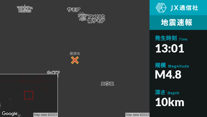 | 震源地 | トンガのHihifoから南東206kmの地点 |