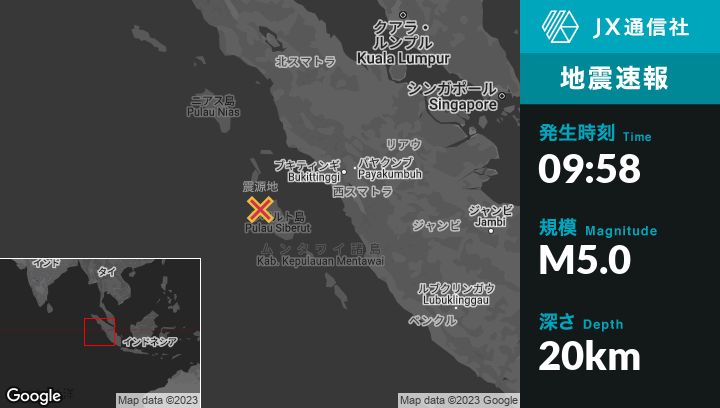 | 震源地 | インドネシアのTuapejatから北西161kmの地点 |
