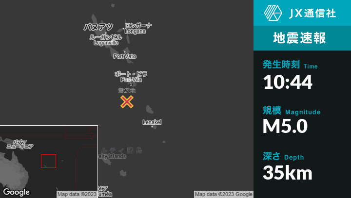 | 震源地 | バヌアツのPort-Vilaから南南西71kmの地点 |