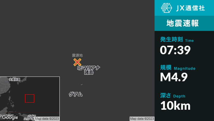 | 震源地 | 北マリアナ諸島のSaipanから北西119kmの地点 |