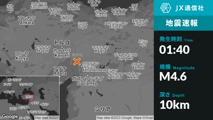 | 震源地 | トルコのGöksunから南東8kmの地点 |