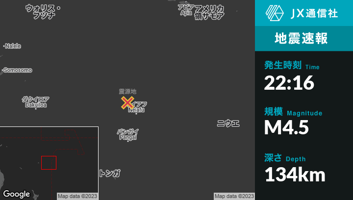 | 震源地 | トンガのNeiafuから北北西77kmの地点 |