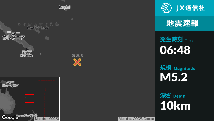 | 震源地 | ニューカレドニアのVaoから東280kmの地点 |