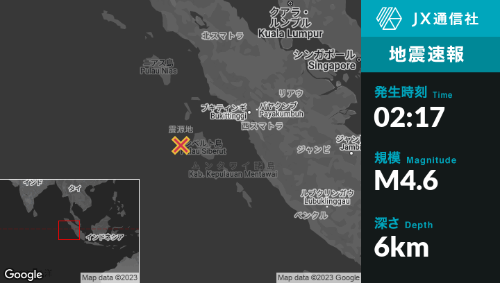 | 震源地 | インドネシアのTuapejatから西北西177kmの地点 |