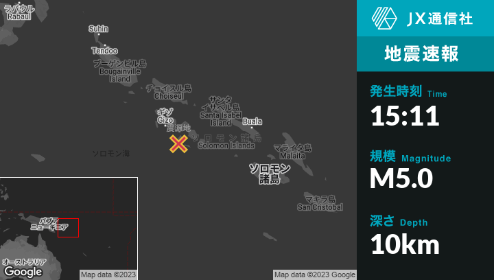 | 震源地 | ソロモン諸島のGizoから南東69kmの地点 |