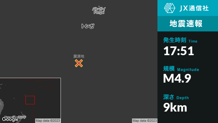 | 震源地 | トンガの‘Ohonuaから南南西260kmの地点 |