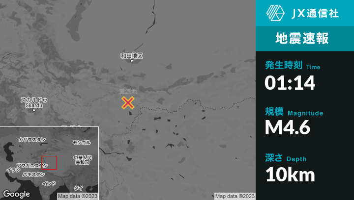 6月18日 01:14頃、中国のKashitashiから南南西68kmの地点でM4.6の地震がありました。