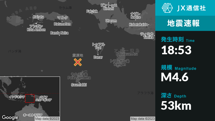 | 震源地 | インドネシアのTualから西南西185kmの地点 |