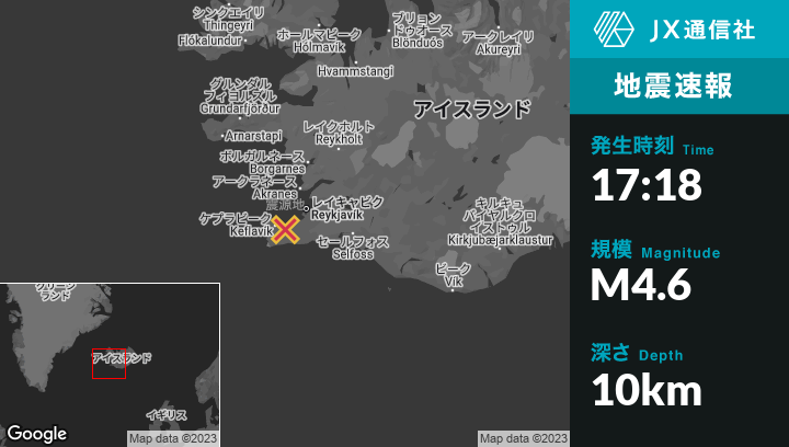 | 震源地 | アイスランドのVogarから北北東3kmの地点 |