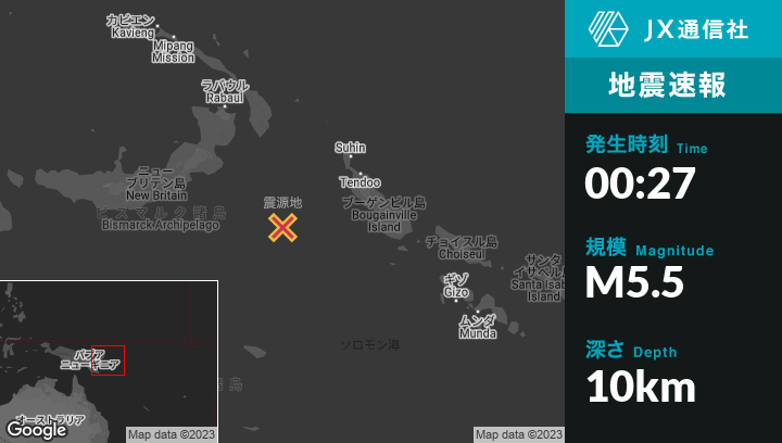 | 震源地 | パプアニューギニアのPangunaから西239kmの地点 |