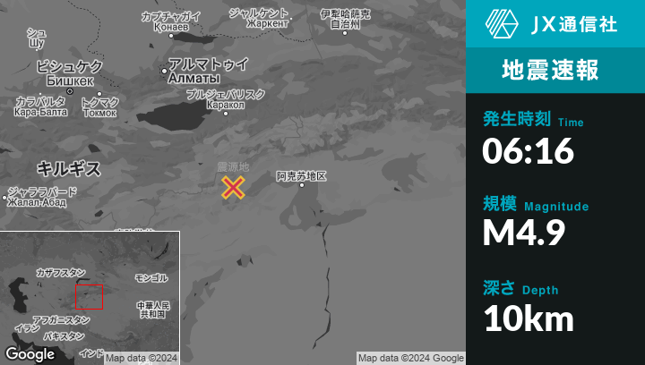 1月23日 06:16頃、中国のAykolから西北西134kmの地点でM4.9の地震がありました。