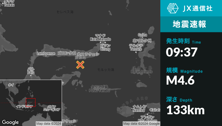 | 震源地 | インドネシアのGorontaloから南南東70kmの地点 |
