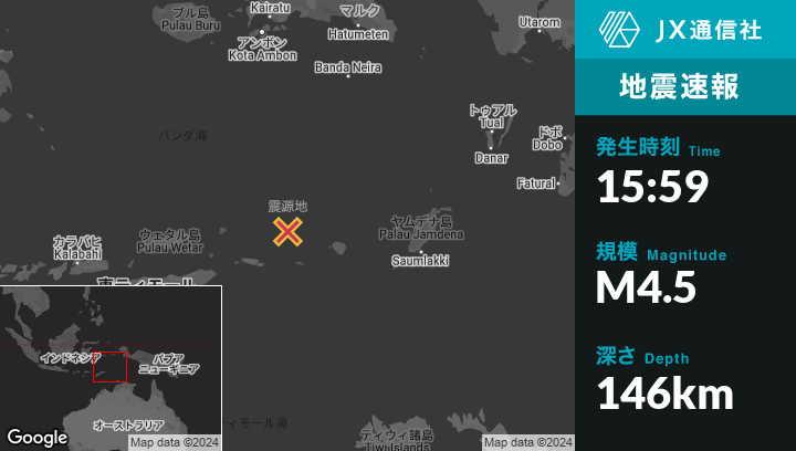7月04日 15:59頃、東ティモールのLospalosから東北東220kmの地点でM4.5の地震がありました。