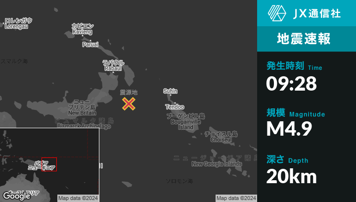 | 震源地 | パプアニューギニアのKokopoから南南東138kmの地点 |