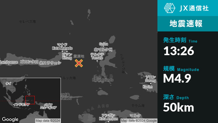 | 震源地 | インドネシアのBitungから南東129kmの地点 |