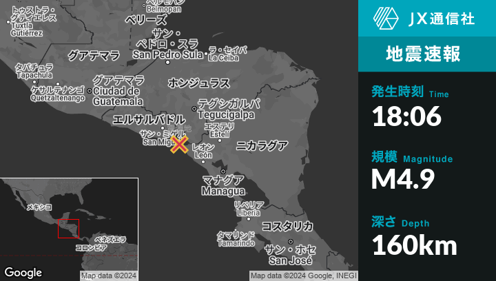12月07日 18:06頃、ホンジュラスのAmapalaから南21kmの地点でM4.9の地震がありました。