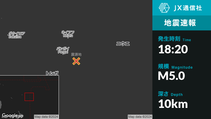 | 震源地 | トンガのFangale’oungaから東南東111kmの地点 |