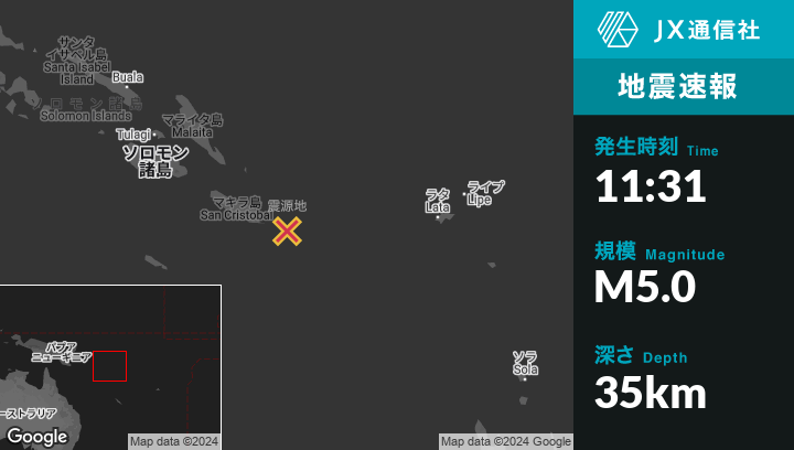 | 震源地 | ソロモン諸島のKirakiraから東南東105kmの地点 |