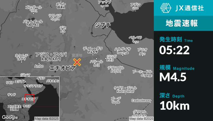 | 震源地 | エチオピアのĀsbe Teferīから西北西24kmの地点 |